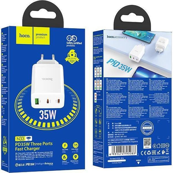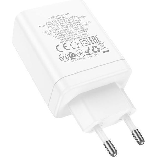 HOCO N33 35W 3A MULTI WALL CHARGER 2X TYPE-C + USB WHITE