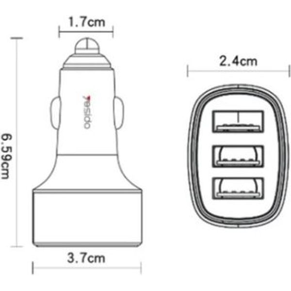 YESIDO Y46 CAR CHARGER 42W 3A 3 X USB-A BLACK