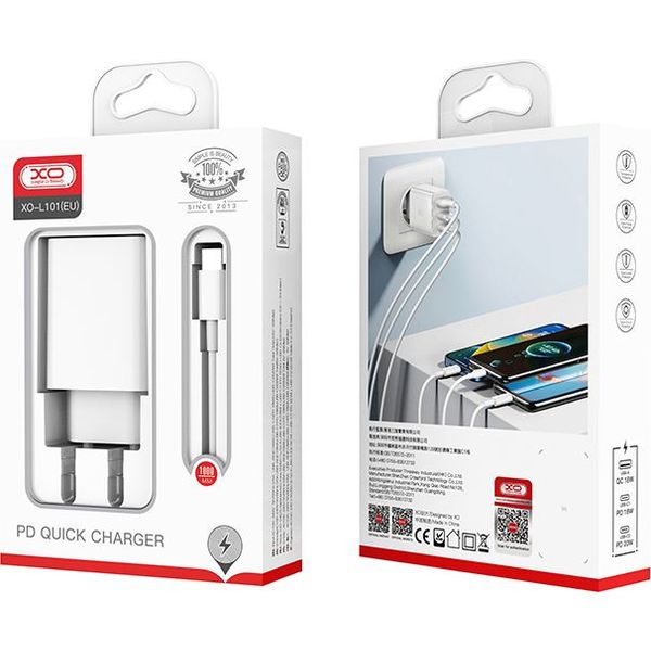 XO L101 (EU) PD20W/PD18W/QC18W QUICK CHARGER WITH TYPE-C CABLE (NB124)