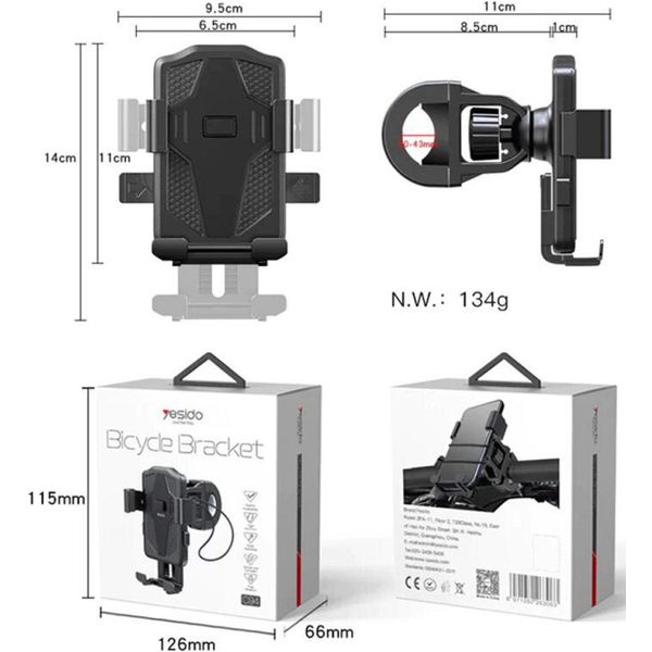YESIDO C94 MOTORCYCLE HOLDER 4INCH - 6.5INCH BLACK