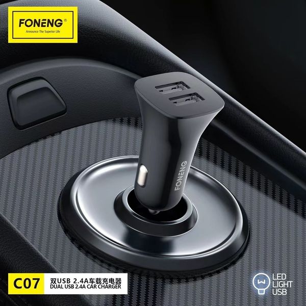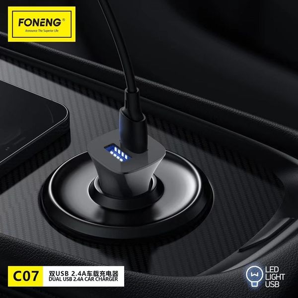 CAR FAST CHARGER FONENG C07 WITH DUAL OUTPUT 2XUSB A 2.4A 12W BLACK