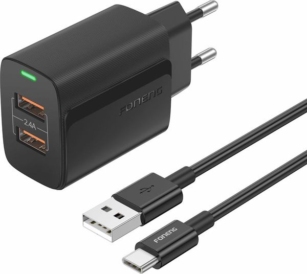 TRAVEL FAST CHARGER FONENG EU63 WITH DUAL OUTPUT 2XUSB A 12W 2.4A BLACK