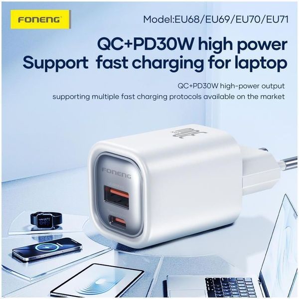 TRAVEL FAST CHARGER FONENG EU69 WITH OUTPUT USB C PD 20W 3A WHITE