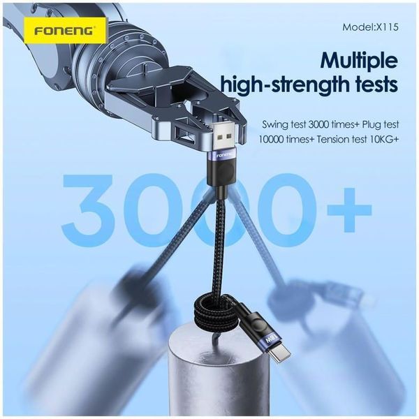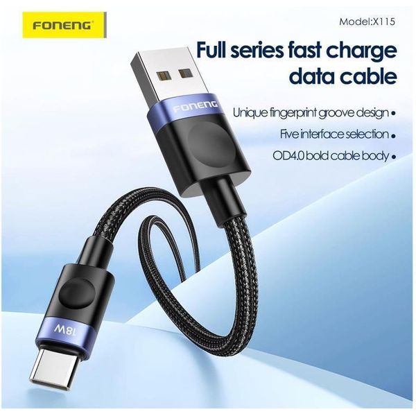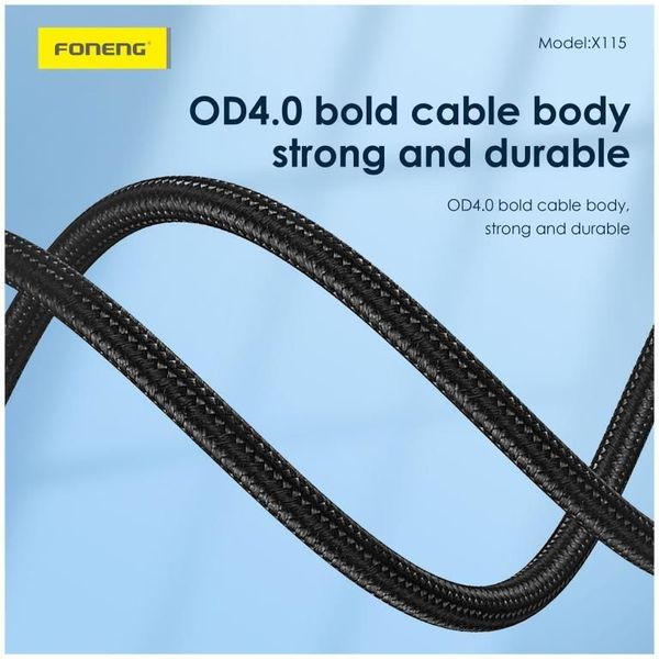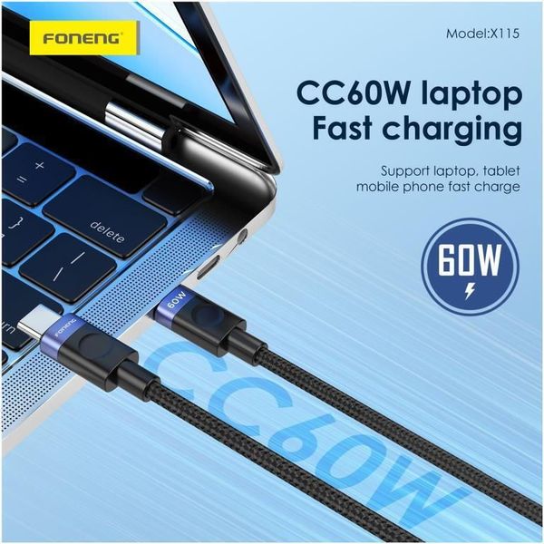 USB 2.0 CABLE FONENG X115 METAL HEAD BRAIDED USB C TO USB C 60W 1M BLACK