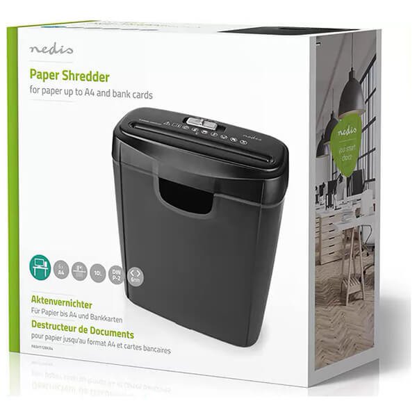 NEDIS PASH112BKA4 PAPER SHREDDER 6X A4 PAGES 10L 190W BLACK