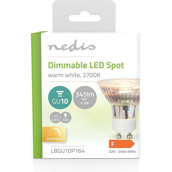 NEDIS LBGU10P164 LED BULB GU10 SPOT 4.5W 345LM 2700K WARM WHITE