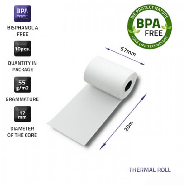 QOLTEC THERMAL ROLL 57 X 20 55G / M2 10 PCS. BPA FREE