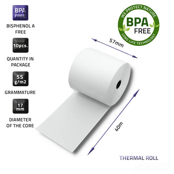 QOLTEC THERMAL ROLL 57 X 40 55G / M2 10 PCS. BPA FREE