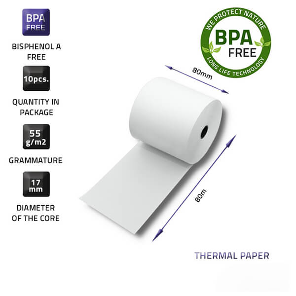 QOLTEC THERMAL ROLL 80 X 80 55G/M2 10PCS BPA FREE
