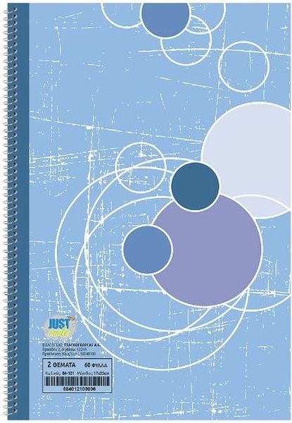 ΤΕΤΡΑΔΙΟ ΣΠΙΡΑΛ 2ΘΕΜΑΤΩΝ ΡΡ ΠΛΑΣΤ. ΕΞΩΦΥΛΛΟ 17X25CM JUSTNOTE 104141 ΜΠΛΕ