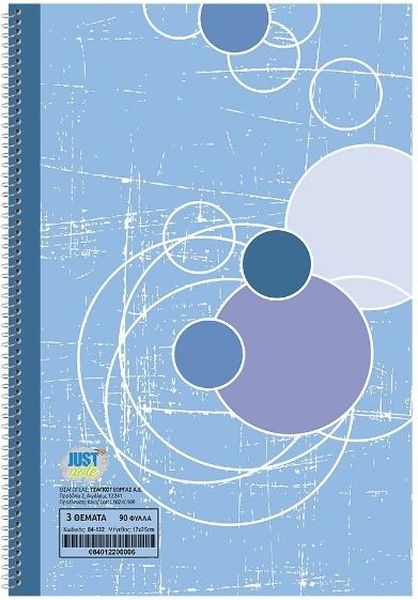 ΤΕΤΡΑΔΙΟ ΣΠΙΡΑΛ 3ΘΕΜΑΤΩΝ ΡΡ ΠΛΑΣΤΙΚΌ ΕΞΩΦΥΛΛΟ 17X25CM JUSTNOTE 104142 ΜΠΛΕ