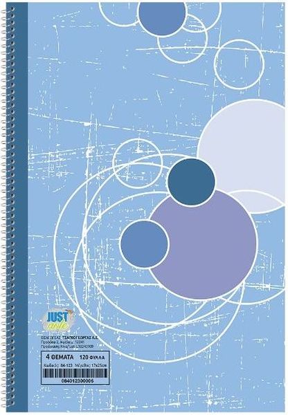 ΤΕΤΡΑΔΙΟ ΣΠΙΡΑΛ 4ΘΕΜΑΤΩΝ ΡΡ ΠΛΑΣΤ. ΕΞΩΦΥΛΛΟ 17X25CM JUSTNOTE 104143 ΜΠΛΕ