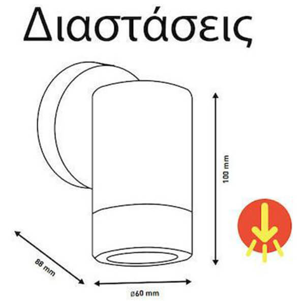 EUROLAMP ΑΠΛΙΚΑ ΤΟΙΧΟΥ DOWN ΣΤΡΟΓΓΥΛΗ ΠΛΑΣΤΙΚΗ IP65 GU10 ΜΑΥΡΟ 145-82051