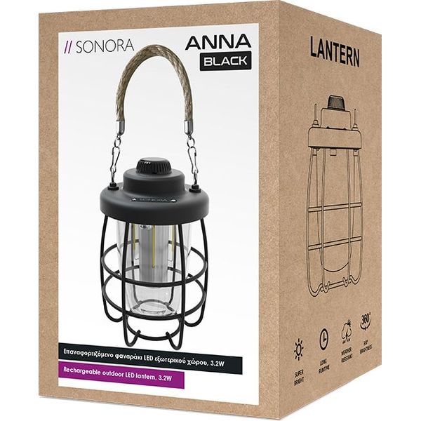 SONORA ANNA BLACK ΕΠΑΝΑΦΟΡΤΙΖΟΜΕΝΟ ΦΑΝΑΡΑΚΙ LED ΕΞΩΤΕΡΙΚΟΥ ΧΏΡΟΥ 3.2W