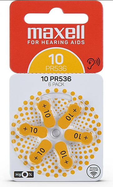 MAXELL ZINK AIR BATTERY ZA10 6 PC BUTTON FOR HEARING AIDS