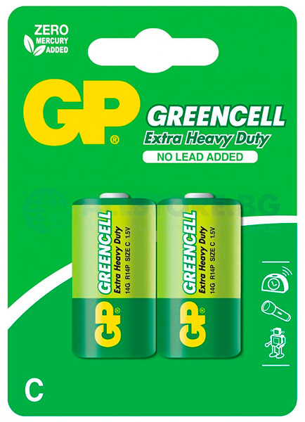GP ZINC CARBON BATTERY GP R14 14G-U2 GREENCELL 2 PCS. 1.5V