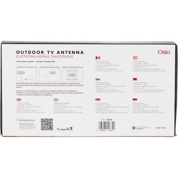 OSIO OTA-3034 ΜΑΥΡΗ ΑΔΙΑΒΡΟΧΗ ΚΕΡΑΙΑ ΤΗΛΕΟΡΑΣΗΣ ΕΞΩΤΕΡΙΚΟΥ ΧΩΡΟΥ IPX4 1080P+4K 25.5 X 9.5 X 2.5CM