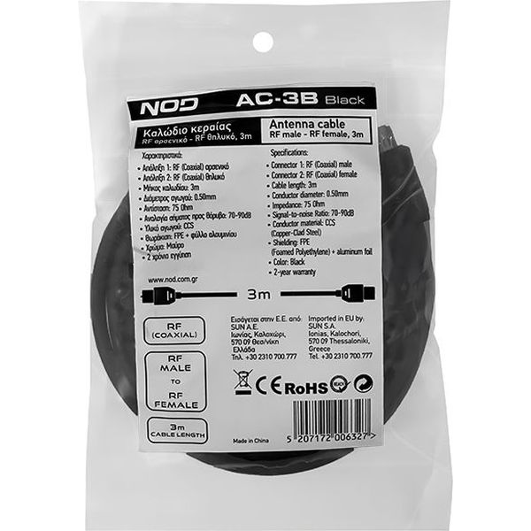 ΚΑΛΩΔΙΟ ΚΕΡΑΙΑΣ RF ΑΡΣΕΝΙΚΟ - RF ΘΗΛΥΚΟ 3M NOD AC-3B BLACK