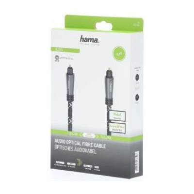 HAMA 205140 AUDIO OPTICAL FIBRE CABLE ODT PLUG (TOSLINK) METAL 3M