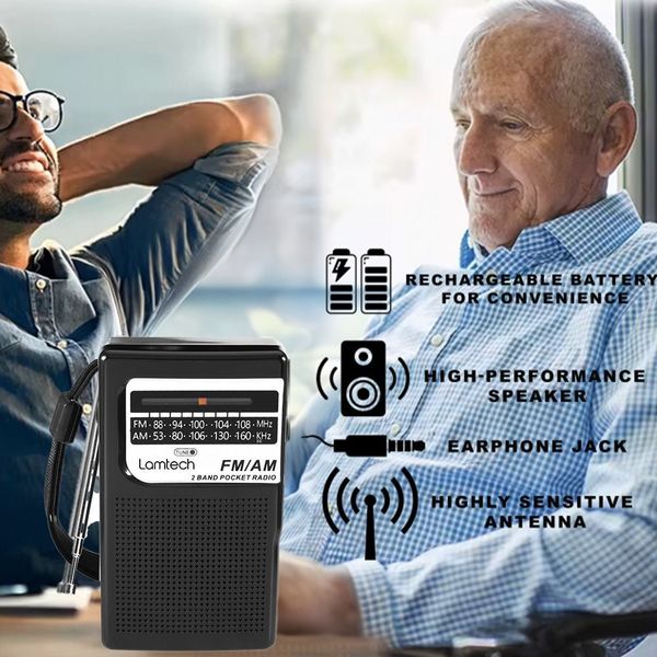 LAMTECH POCKET RADIO WITH EARPHONES JACK BLACK LAM112556