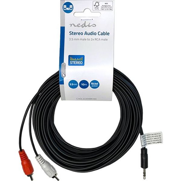 NEDIS CAGL22200BK100 STEREO AUDIO CABLE 3.5MM MALE - 2X RCA MALE 10.0M BLACKC