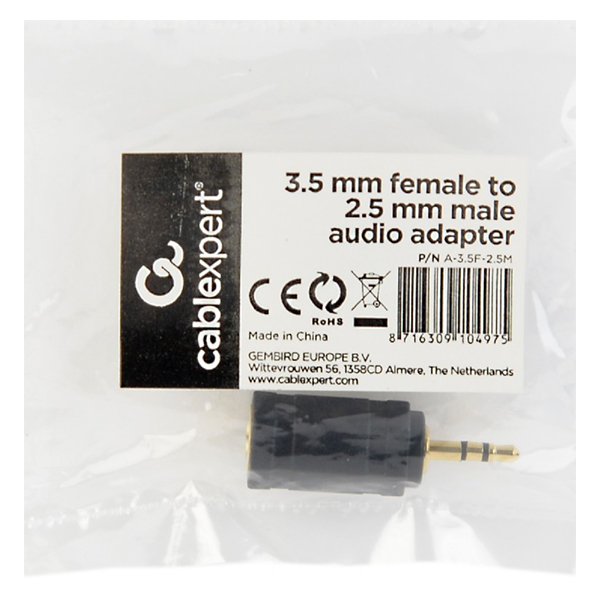 GEMBIRD A-3.5F-2.5M 3.5 MM FEMALE TO 2.5 MM MALE AUDIO ADAPTER