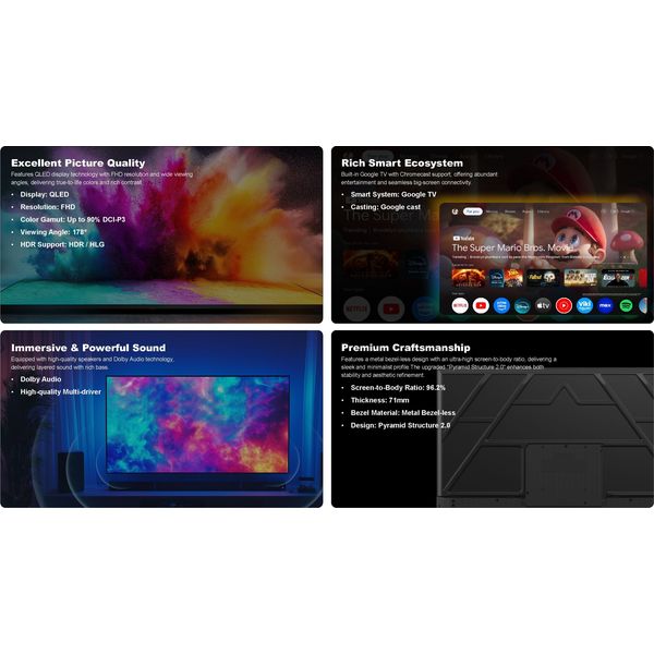 TV ARIELLI QLED32QM10GTV 32'' QLED HDR FULL HD SMART WIFI GOOGLE TV