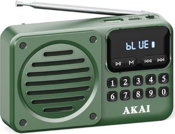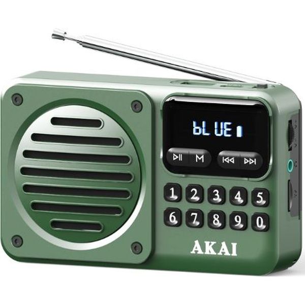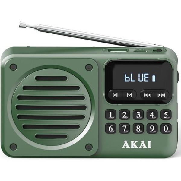 AKAI APR-300 ΠΡΑΣΙΝΟ ΜΙΝΙ ΦΟΡΗΤΟ ΡΕΤΡΟ ΡΑΔΙΟΦΩΝΟ FM/AM BLUETOOTH USB MICROSD