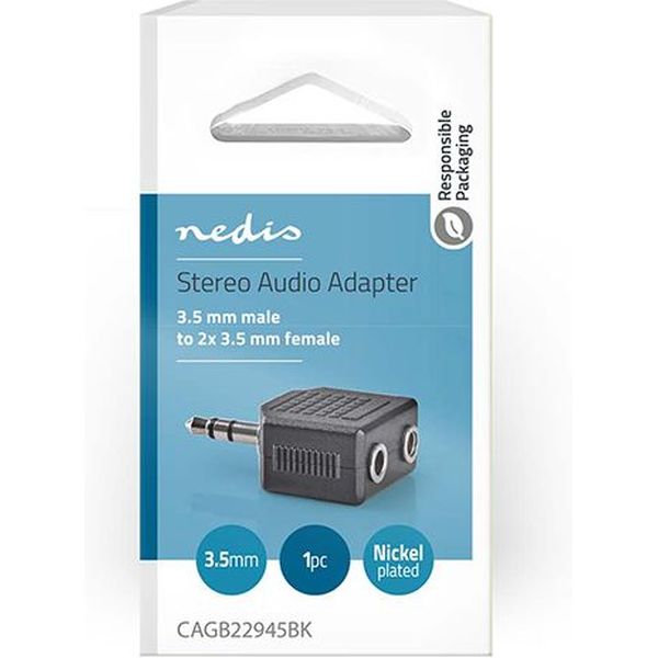 NEDIS CAGB22945BK STEREO AUDIO ADAPTER 3.5 MM MALE - 2X 3.5 MM FEMALE BLACKP