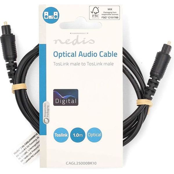 NEDIS CAGL25000BK10 OPTICAL AUDIO CABLE TOSLINK MALE - TOSLINK MALE 1.00M BLACK