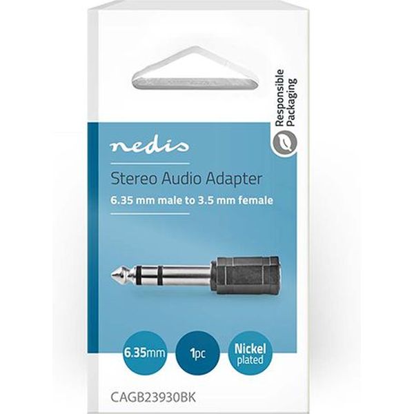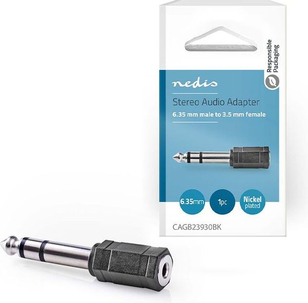 NEDIS CAGB23930BK STEREO AUDIO ADAPTER 6.35 MM MALE - 3.5 MM FEMALE BLACKP