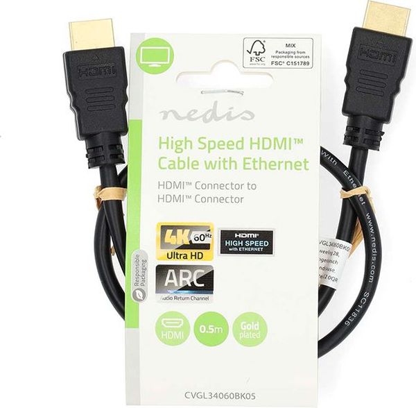 NEDIS CVGL34060BK05 HIGH SPEED HDMI CABLE WITH ETHERNET 0.50M BLACK
