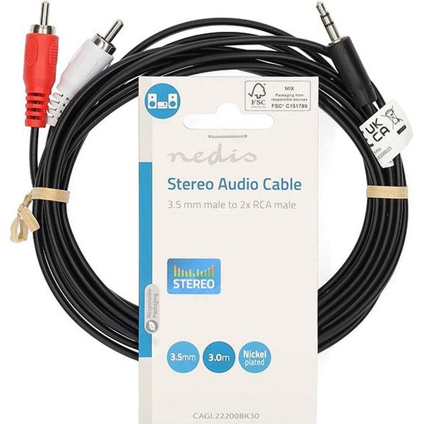 NEDIS CAGL22200BK30 STEREO AUDIO CABLE 3.5MM MALE - 2X RCA MALE 3.00M BLACK