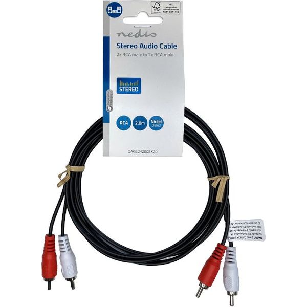 NEDIS CAGL24200BK20 STEREO AUDIO CABLE 2X RCA MALE - 2X RCA MALE 2.00M BLACK