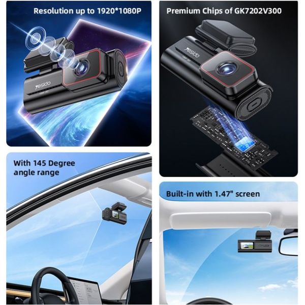 YESIDO KM21 1080P DASH CAMERA WI-FI 1.47INCH LCD BLACK