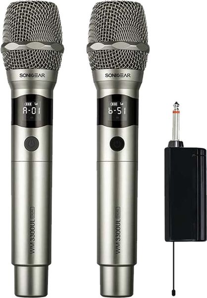 SONICGEAR DUAL PROFESSIONAL UHF WIRELESS LED MICROPHONE WM 3300 UL PLATINUM WM3300ULD-PL