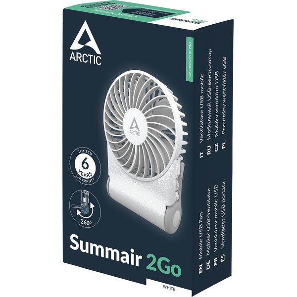 ARCTIC SUMMAIR 2GO POWERFUL HANDHELD DESK FAN WITH EXTRA-LONG BATTERY LIFE WHITE AEBRZ00029A