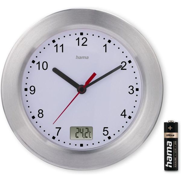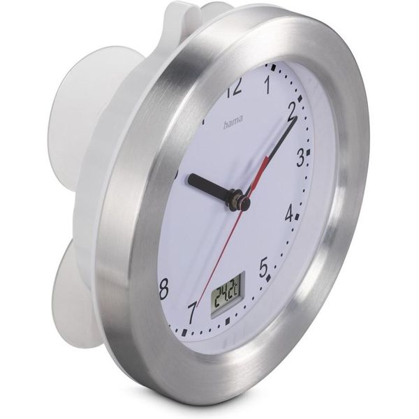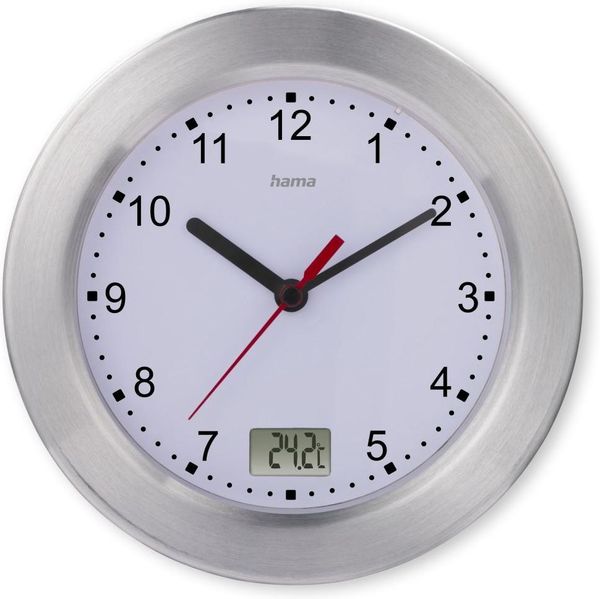HAMA 185889 "MAURITIUS" BATHROOM CLOCK WALL CLOCK WITH THERMOMETER NO TICKING Φ17 CM