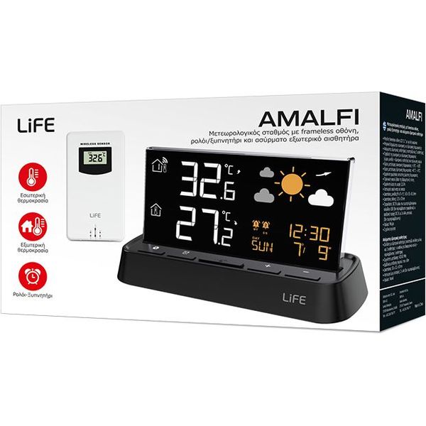LIFE AMALFI ΜΕΤΕΩΡΟΛΟΓΙΚΟΣ ΣΤΑΘΜΟΣ FRAMELESS ΡΟΛΟΙ/ΞΥΠΝΗΤΗΡΙ ΕΞΩΤ.ΑΙΣΘΗΤΗΡΑ