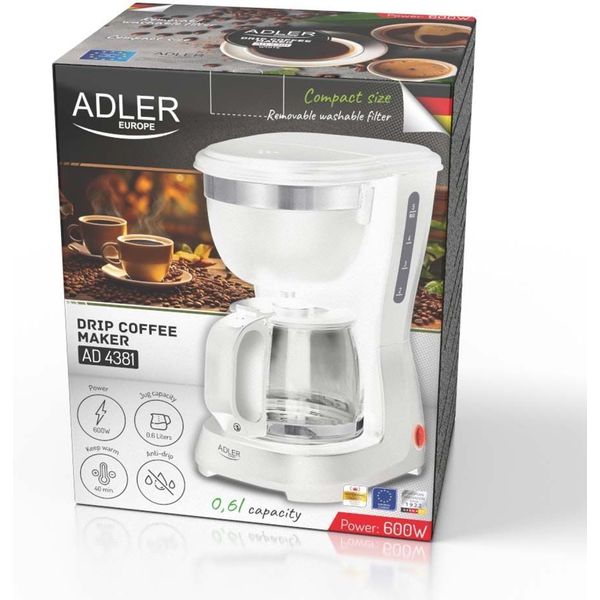 ADLER DRIP COFFEE MAKER 0.6L WHITE AD4381W