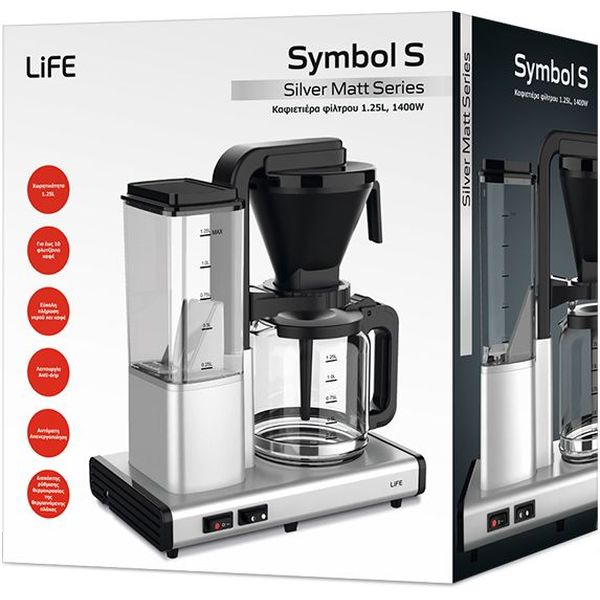 LIFE SYMBOL S SILVER ΜΑΤΤ 1400W ΚΑΦΕΤΙΕΡΑ ΦΙΛΤΡΟΥ 1.25L