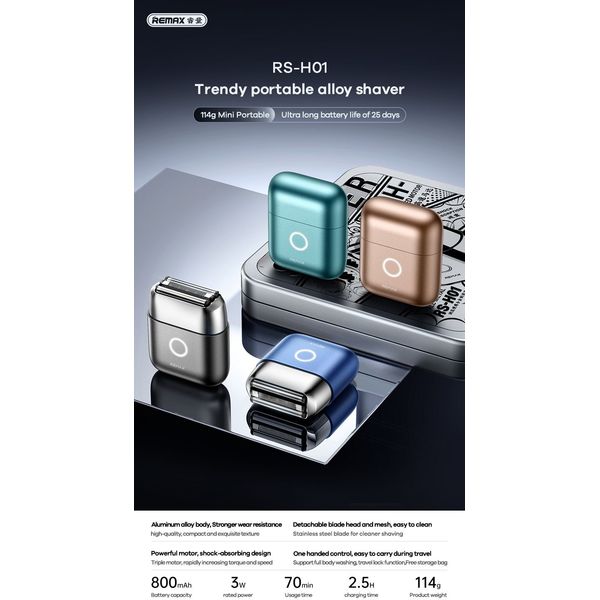 REMAX RS-H01 (GREY) PORTABLE ALUMINIUM SHAVER