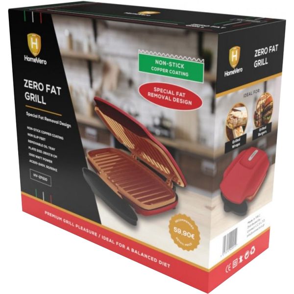 HOMEVERO ZERO FAT GRILL - ΔΙΠΛΗ ΨΗΣΤΙΕΡΑ 1000W