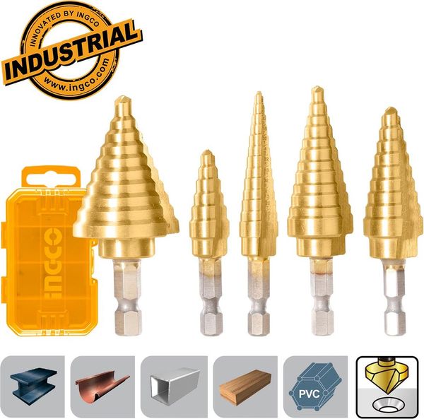 ΤΡΥΠΑΝΙΑ ΚΩΝΙΚΑ ΜΕ 1/4" ΚΑΙ 5/16" ΣΕΤ 5 ΤΕΜ. INGCO AKSDS2051