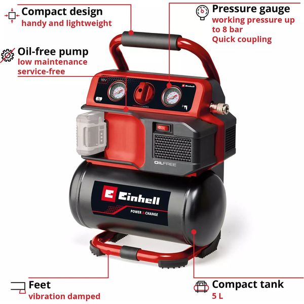 EINHELL ΑΕΡΟΣΥΜΠΙΕΣΤΗΣ ΜΠΑΤΑΡΙΑΣ TE-AC 18/75 LI OF-SOLO 4020410