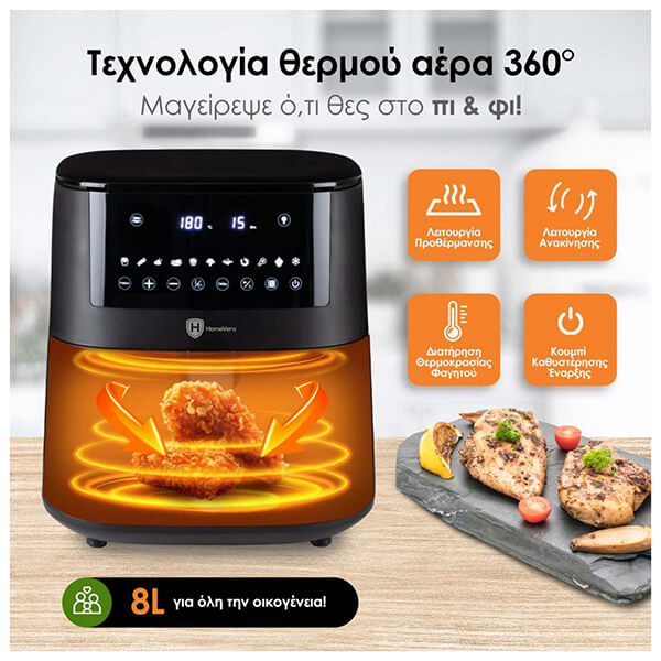 ΦΡΙΤΕΖΑ ΑΕΡΟΣ 8L ΜΕ ΨΗΦΙΑΚΟ ΕΛΕΓΧΟ HOMEVERO AF8.0 1650W