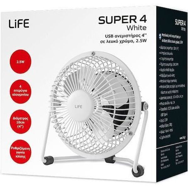 LIFE SUPER4 WHITE MINI ΑΝΕΜΙΣΤΗΡΑΣ USB 2.5W ΛΕΥΚΟΣ 221-0449
