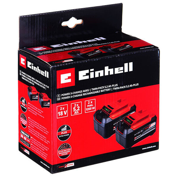 SET 2 ΜΠΑΤΑΡΙΩΝ EINHELL PCX LI-ION 18V 2Χ 5.2AH ΓΙΑ ΤΗ ΣΕΙΡΑ POWER X CHANGE 4511526