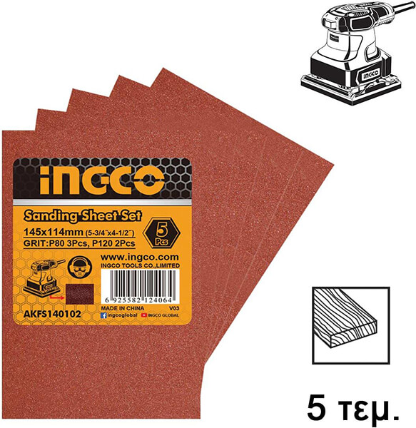 ΦΥΛΛΑ ΛΕΙΑΝΣΗΣ ΤΡΙΒΕΙΟΥ 114 X 145MM ΣΕΤ 5 ΤΕΜ. INGCO AKFS140102