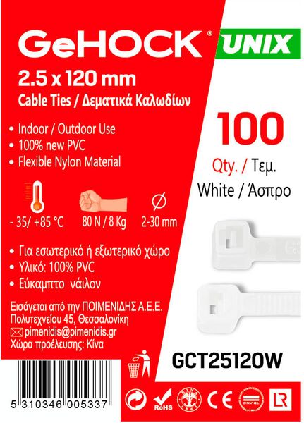 ΔΕΜΑΤΙΚΑ ΣΕ ΛΕΥΚΟ ΧΡΩΜΑ 2.5X120MM 100 ΤΕΜ. GEHOCK 025120